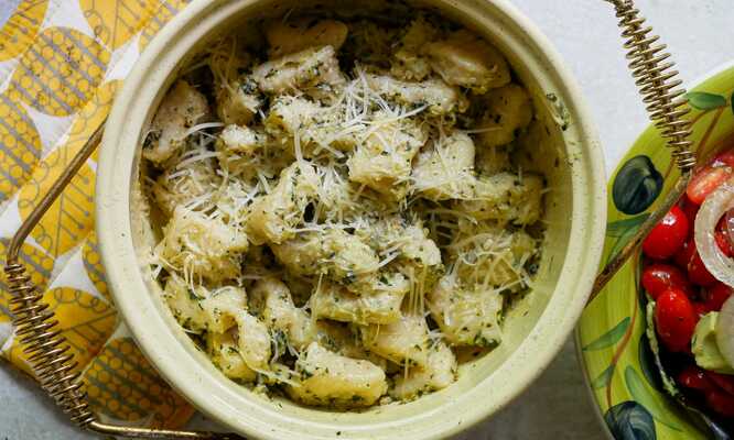 Learn to make pillow-soft gnocchi, fresh pesto sauce, and a zesty oregano, tomato, onion and avocado salad!