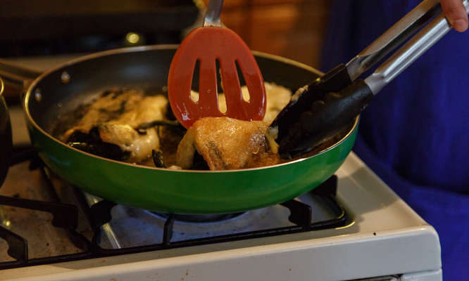 Learn to make chiles rellenos (battered and fried poblano peppers stuffed with queso blanco) served with arroz verde (long grain rice simmered with a spinach-tomatillo puree) and frijoles a la charra (roman beans cooked in a delicious array of Mexican spices).