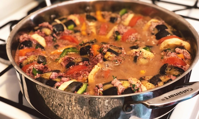 In this 2.5 hour interactive online experience Jeanette will guide you through making two of her family recipes. During your class, you'll prepare Jeanette's maldoum (eggplant and vegetable casserole with seasoned and braised ground beef) and roz bil shaghrieh (Turkish rice cooked with pan-fried, golden vermicelli).